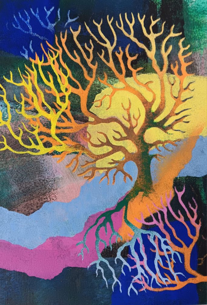 Abstraktion und Surrealismus. Ihre Werke entstehen aus dem Bauch heraus und entfalten